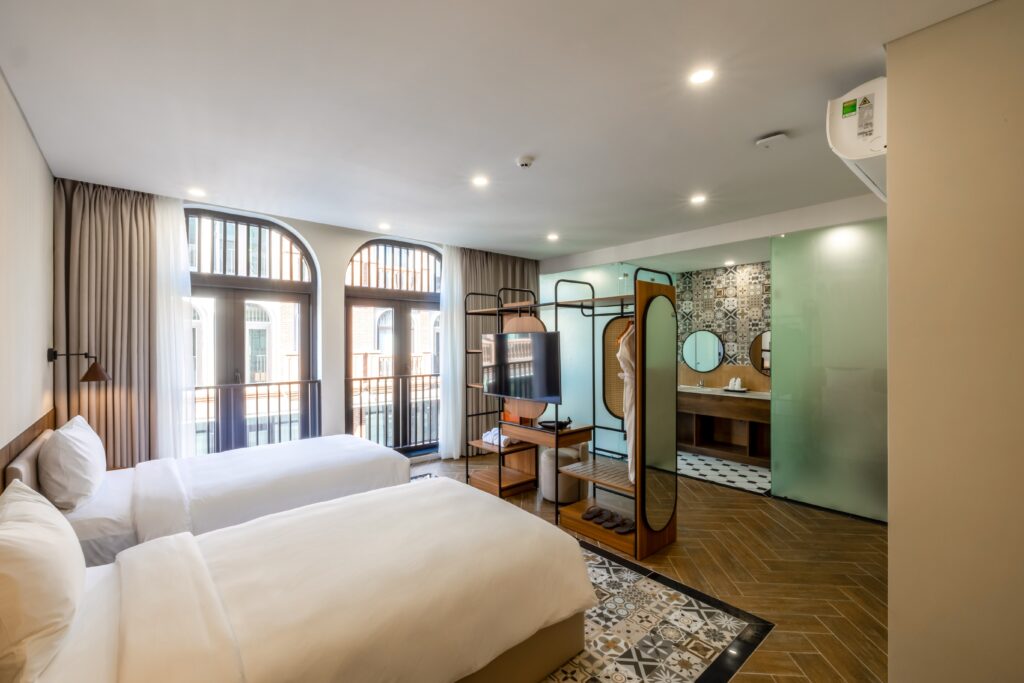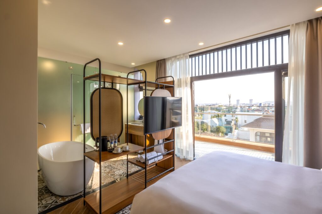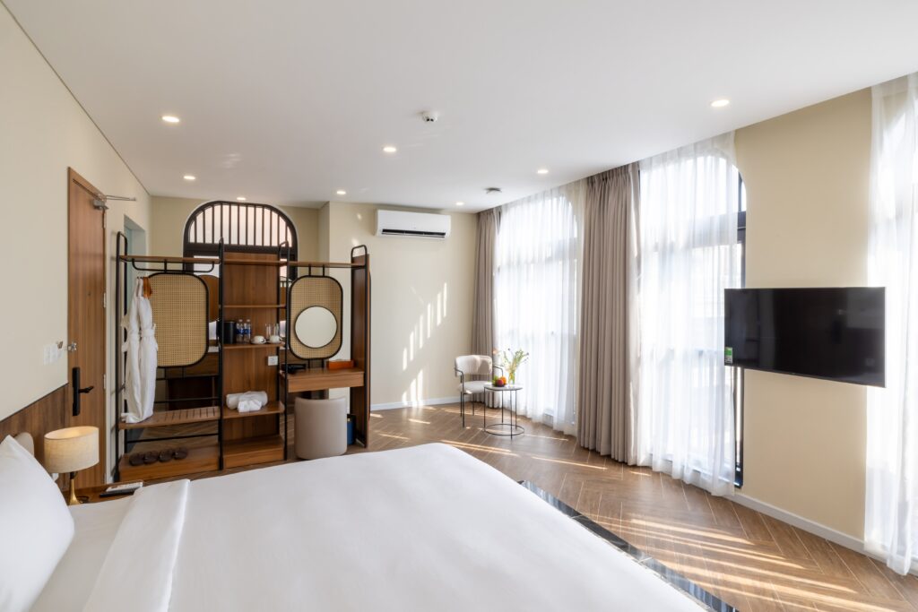 At Lumiere Boutique Vỹ Dạ, each room offers a peaceful retreat where traditional design elements blend harmoniously with modern comforts.